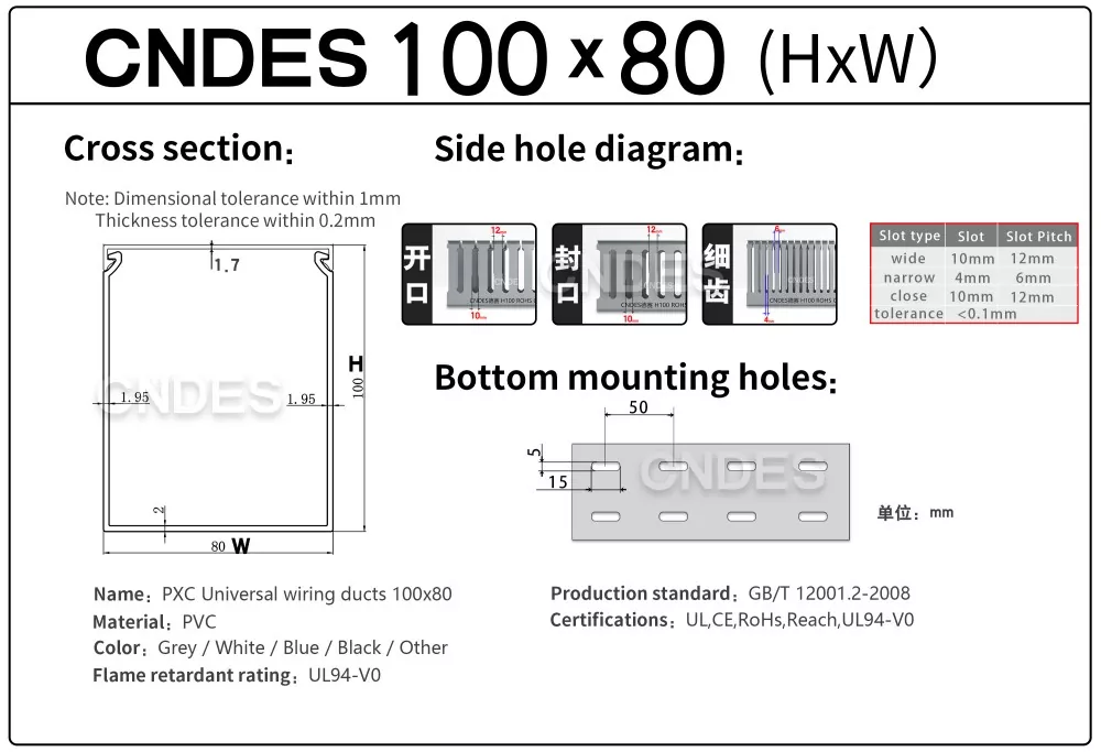 CNDES یک تولید کننده سینی کابل حرفه ای با 24 سال تجربه است و متخصص در تولید کانال های سیم کشی محفظه پی وی سی با ارتفاع 100 میلی متری سفارشی است. در اینجا به معرفی محصولات سری سینی کابل 100 میلی متری خود می پردازیم.
