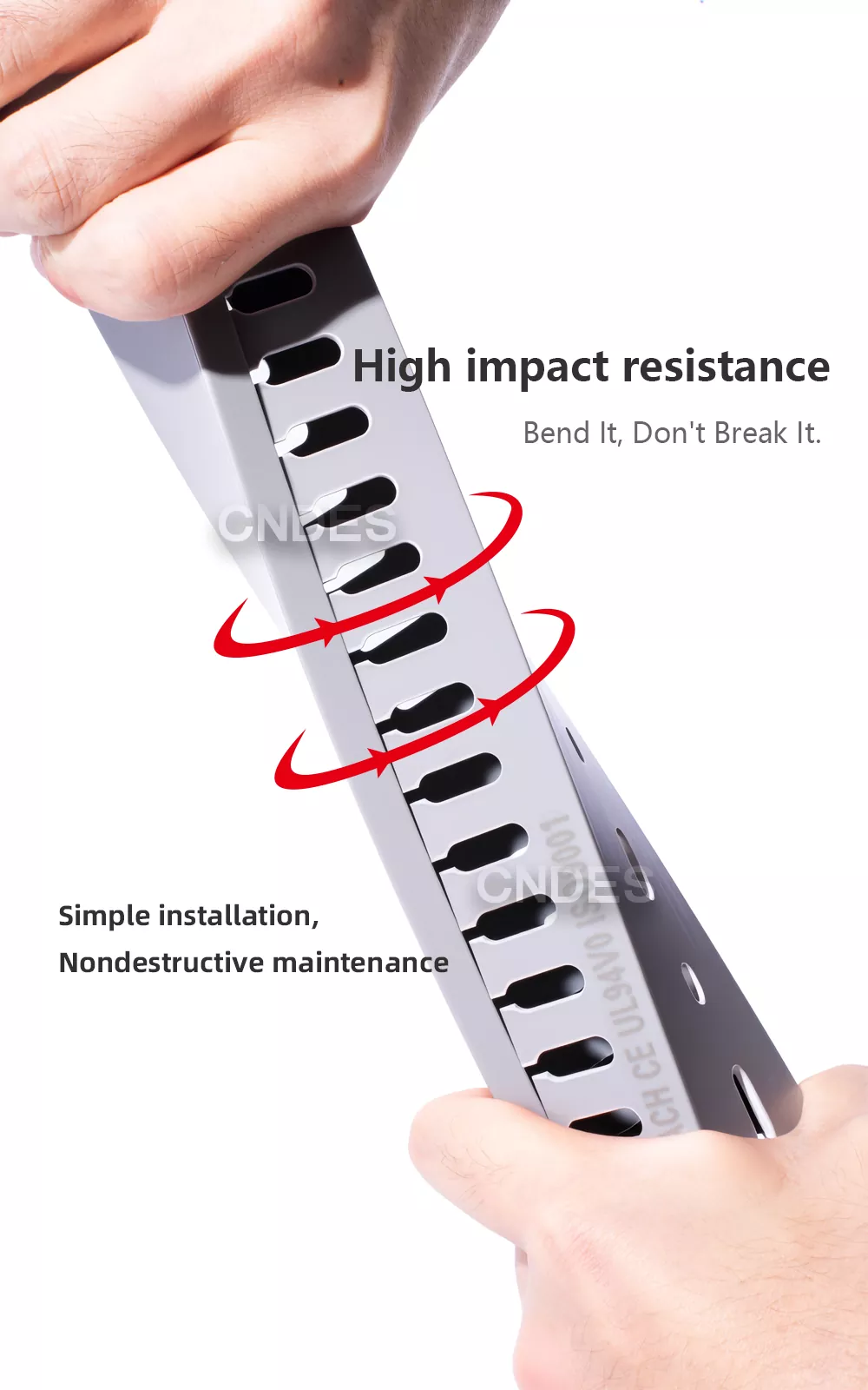 ساخته شده از مواد اولیه PVC با کیفیت بالا، سازگار با محیط زیست، مقاوم در برابر شعله و دارای خواص فیزیکی با استحکام بالا. می توانید مطمئن باشید که کانال کابینت برقی پی وی سی شیاردار CNDES را از کارخانه ما خریداری کنید.