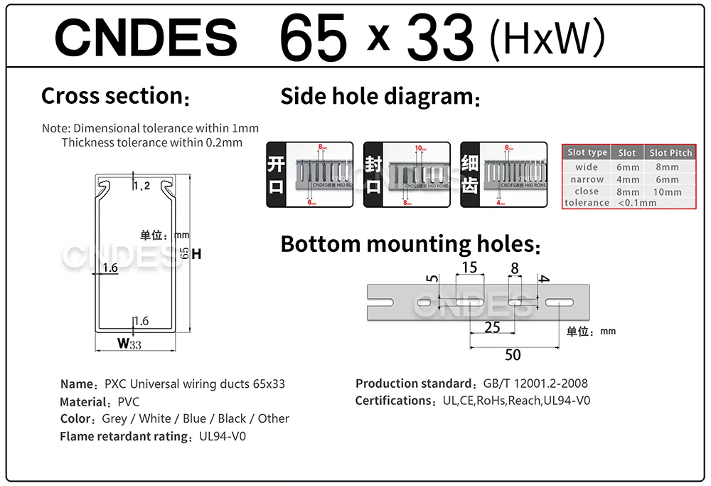 برای کانال مسیریابی کابل 65×33، ما پشتیبانی می کنیم: