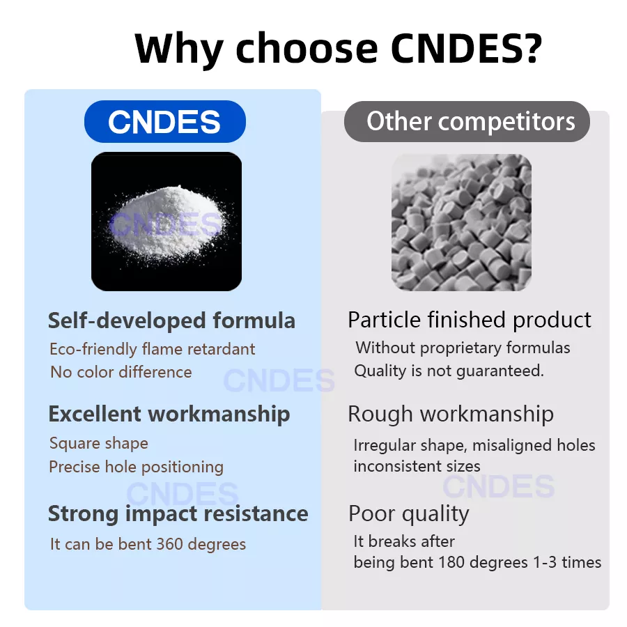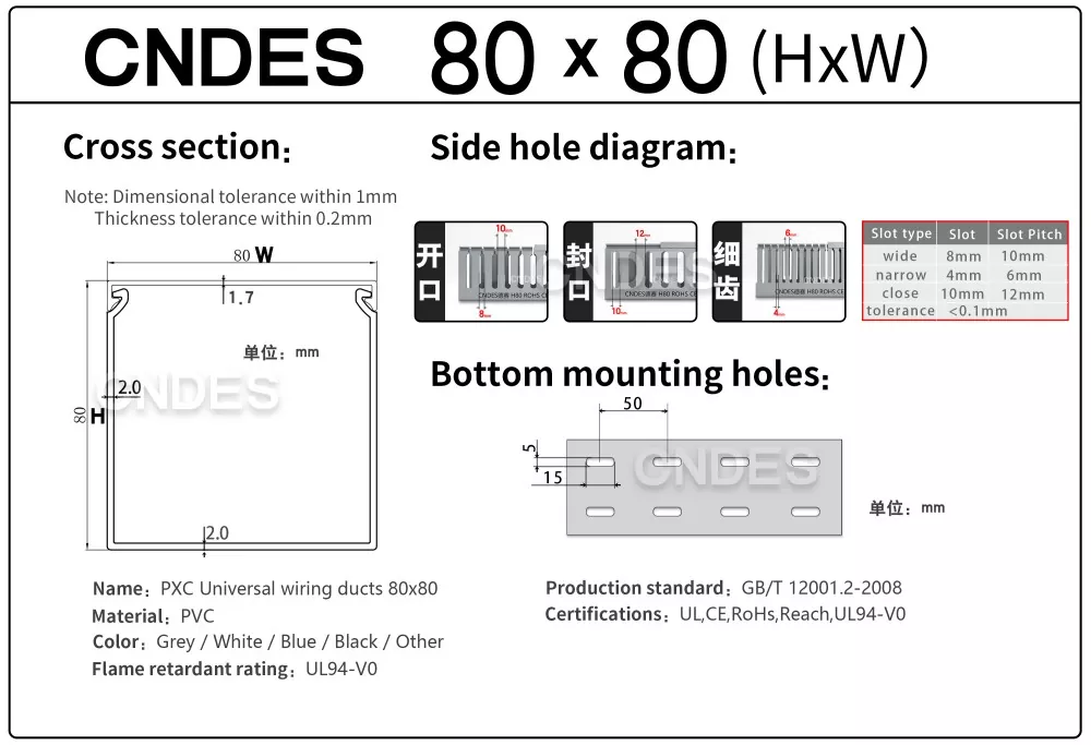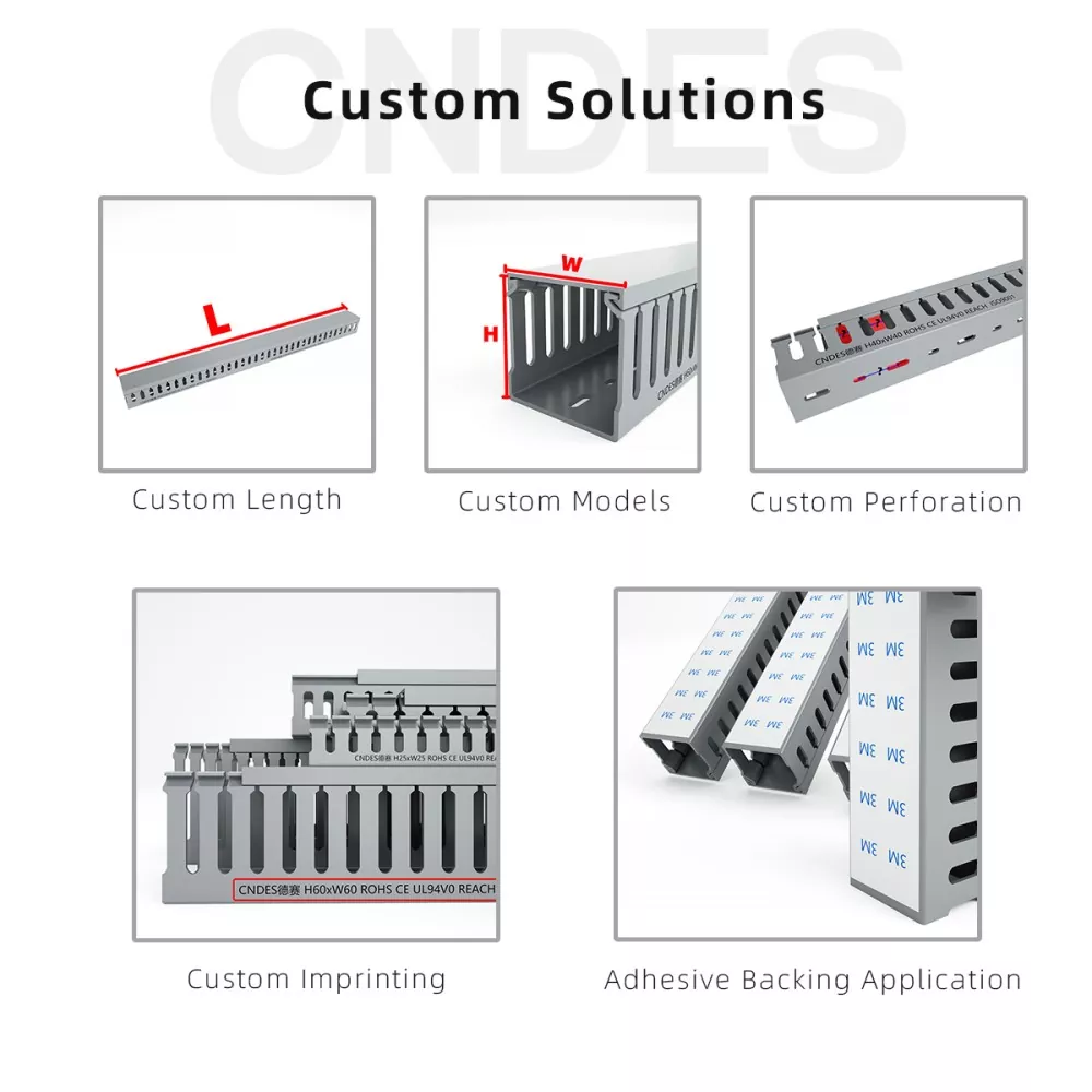 هنگامی که سینی های کابل استاندارد نمی توانند دسته های سیم کشی پیچیده را در خود جای دهند، کانال سیم کشی صفحه کلید پی وی سی شیاردار 80×80 سفارشی CNDES انتخاب خوبی است. با فضای داخلی بزرگ 80mm*80mm، به طور خاص برای سناریوهای با تقاضای بالا مانند کابل کشی ستون فقرات مرکز داده، خوشه های برق تجهیزات صنعتی و سیم کشی متمرکز در کابینت های کنترل بزرگ طراحی شده است. به راحتی تعداد زیادی کابل را در خود جای داده و سازماندهی می کند و یک بار برای همیشه با شلوغی و شلوغی خداحافظی می کند.